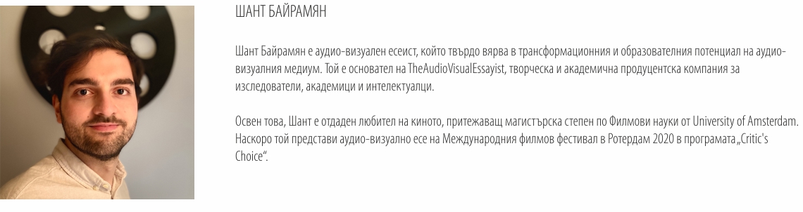 В съпътстващата програма на фестивала, изкушените от развиващата се аудио-визуална култура, имаха възможност да участват в майсторския клас „Преодоляване на пропастта: Аудиовизуалното есе в съвременната медийна сфера“, с водещ Шант Байрамян.