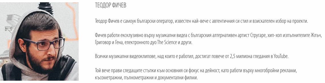 Видеото може да бъде придружено с кратка визитка - текстово представяне на автора, екипа, филма и т.н.