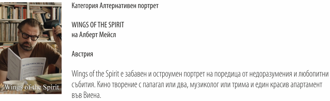 БНР Програма Христо Ботев – Време и половина (с Таня Димова) Първият International Portrait Film Festival ни показва същността на портретния филм.
