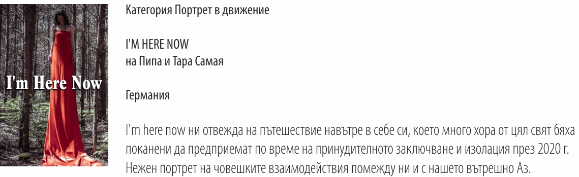 Селектираните най-добри фотопортрети ще участват във фотографска изложба по време на фестивалните събития на IPFF 2021.